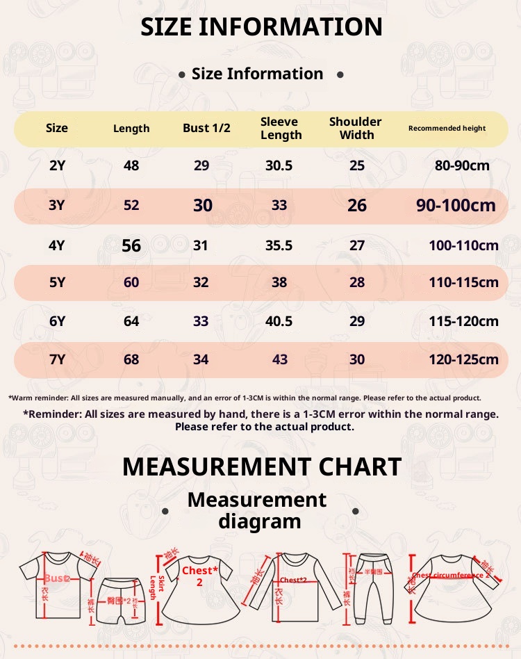 Suitable Height: 2Y(90cm), 3Y(100cm), 4Y(110cm), 5Y(115cm), 6Y(120cm), 7Y(125cm)