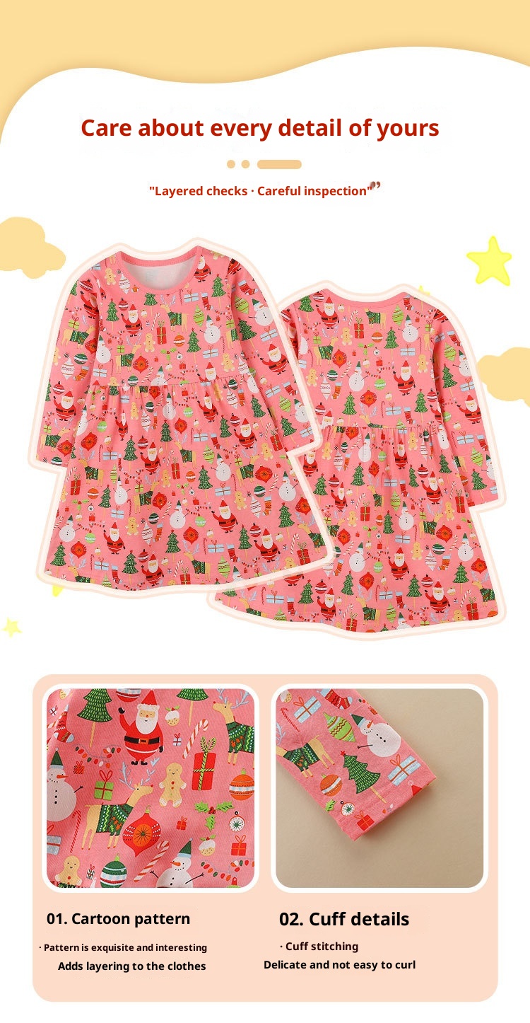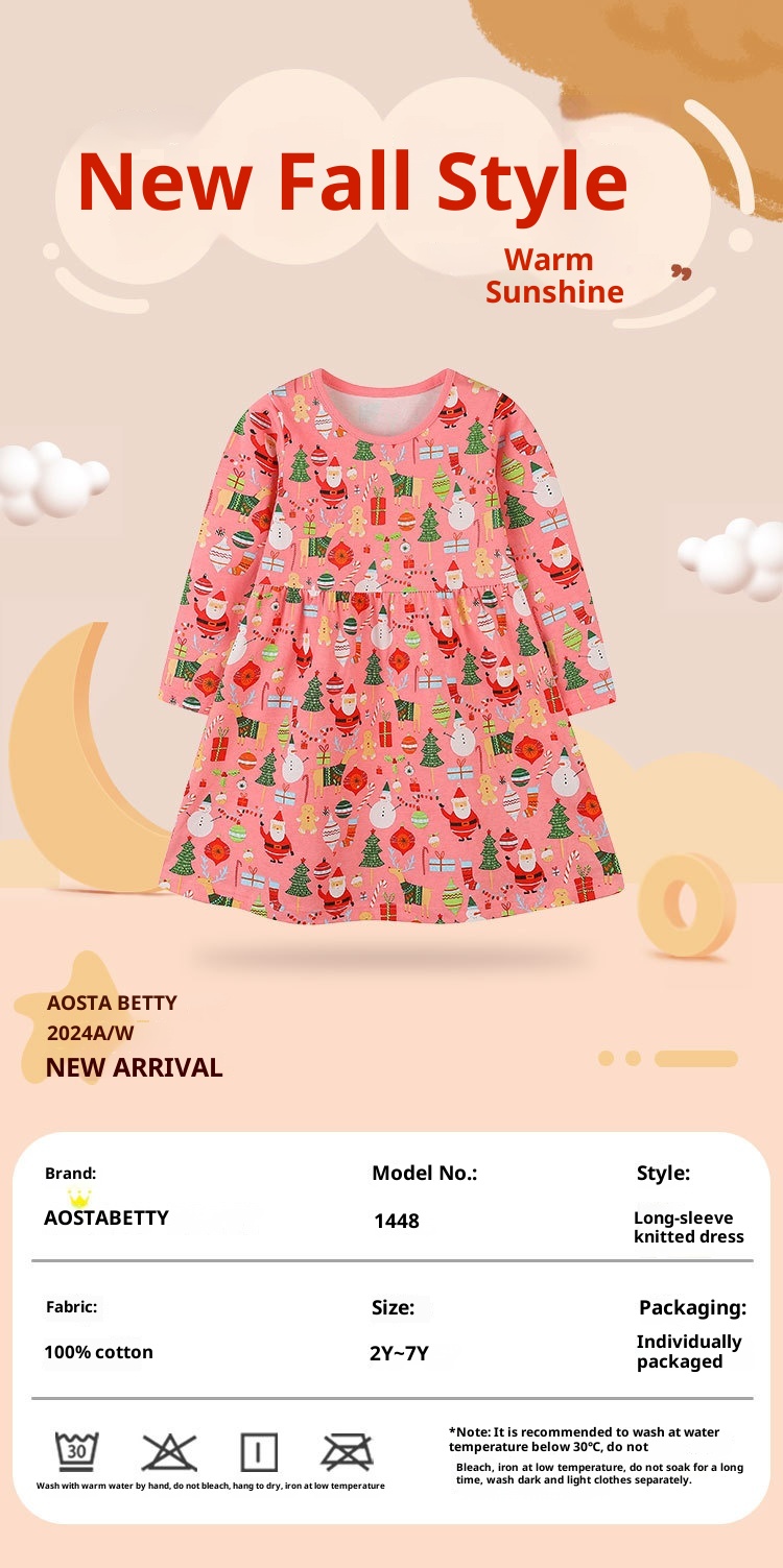 Girl's Long Sleeve Knitted Cotton Cartoon Print Dress